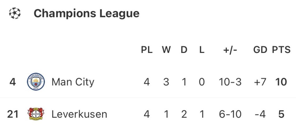 Leverkusen, now managed by former Denmark coach Kasper Hjulmand, have won their previous three games in all competitions, including a 1-0 victory over Benfica in Europe. This is the first meeting between the two sides in this competition, in a game where Man City will be hoping to climb to the top of the table.