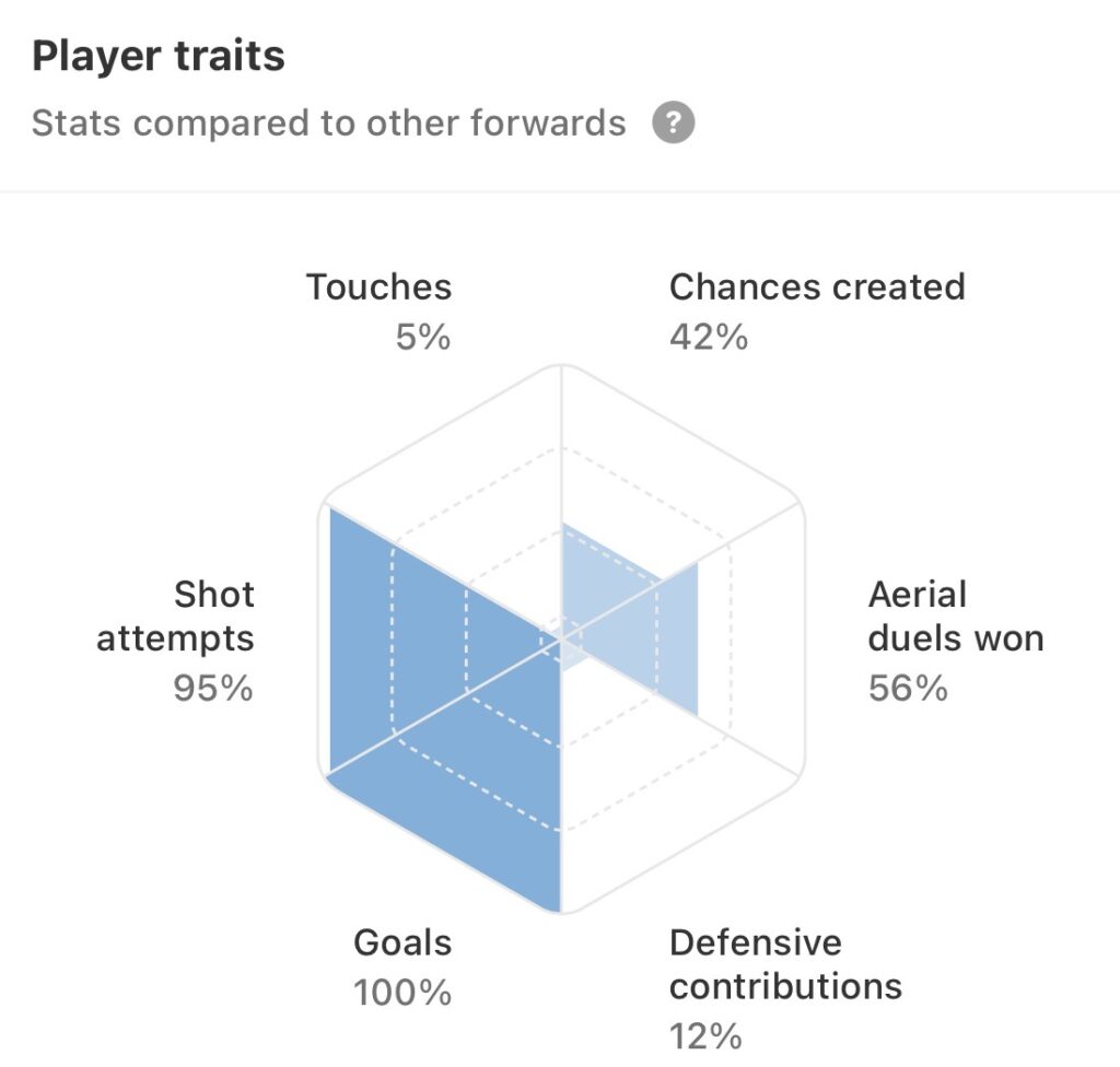 Haaland’s player traits comparison (vs. strikers in top five leagues)